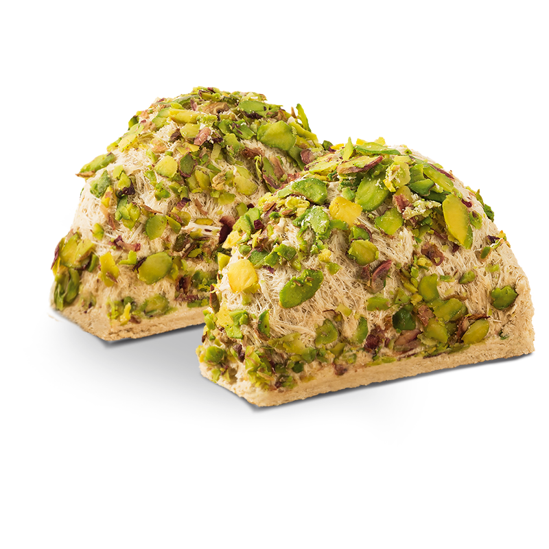 It is both practical and easy with delicious slice by slice! You can enjoy Güvenbey triangular sliced Pistachio Tahini Halva with its small size at every meal. It is made using only tahini, sugar and Gypsophila Extract, which allows sesame oil to mix with sugar. While we can offer a wide range of products including 350g, 600g, 800g and 5000g, we offer you the facility you want with baklava slice, triangular slice, tray and block choices.