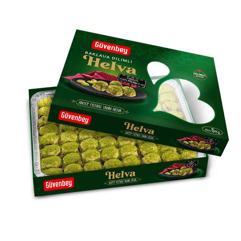 Restaurantlarınız ve büyük davetlerinizde herkese yetebilecek kadar büyüğüz! Güvenbey dilimli Antep Fıstıklı Tahin Helva ile tüm konuklarınızın porsiyonlarında eşit yer buluyoruz. İçerisinde hiçbir katkı maddesi ve Glikoz şurubu içermeyen Antep Fıstıklı Tahin sadece tahin, şeker ve susam yağının şeker ile karışmasını sağlayan Çöven Özütü kullanılarak yapılmaktadır. 350g, 400g, 600g ve 800g olmak üzere geniş ürün yelpazesi sunar.