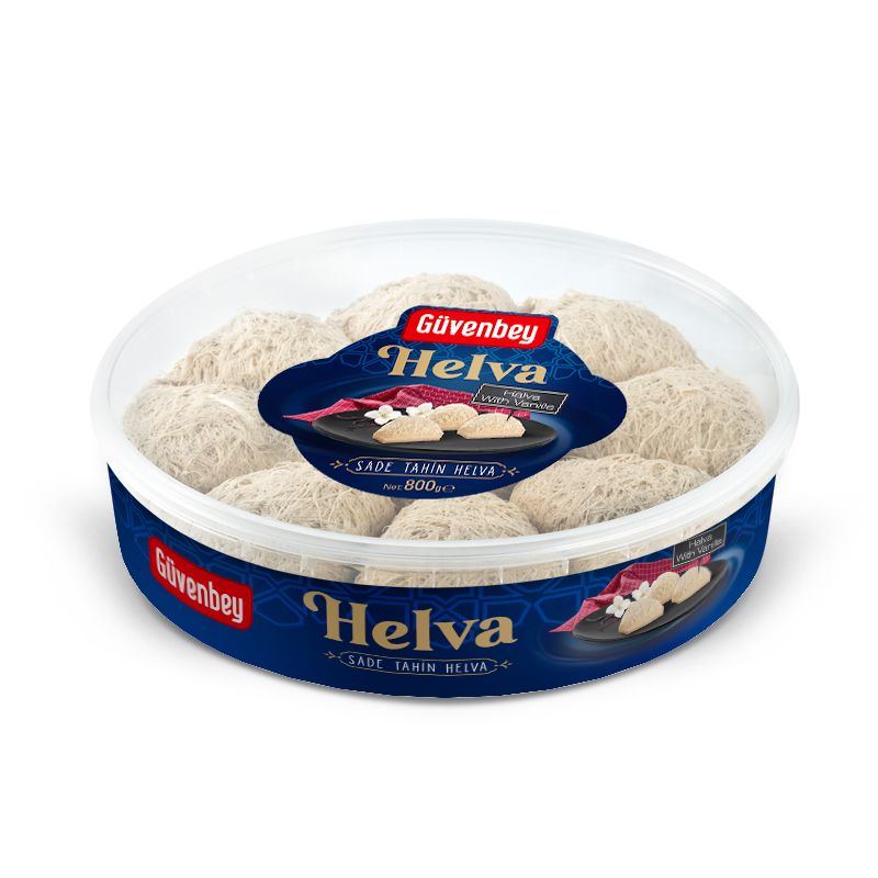 Ağızda dağılan taptaze lezzetiyle sabah kahvaltılarınızda tüm ailenize yetecek Güvenbey Sade Tahin Helva, geleneksel yöntemler kullanılarak üretilen ve sadece tahin, şeker ve susam yağının şeker ile karışmasını sağlayan Çöven Özütü kullanılarak yapılmaktadır. 350g, 400g, 600g ve 5000g olmak üzere geniş ürün yelpazesi sunabilirken, baklava dilim, üçgen dilim, tepsi ve blok seçenekleri ile size dilediğiniz kolaylığı sağlamaktadır.
