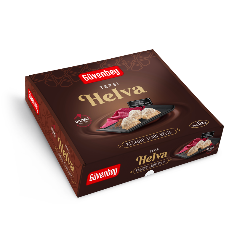 Büyük işletmelerin tercihi Tepside Kakaolu Tahin Helva ile yoğun kalabalığın üstesinden gelebilirsiniz. İşletmelerinizde kolaylıkla tercih edebilir, büyük boy kakao lezzetlerini tüm konuklarınıza yaşatabilirsiniz. Güvenbey Kakaolu Tahin Helva, 1. kalite malzeme kullanılarak ve geleneksel yöntemler ile üretilmektedir. Sadece tahin, kakao, şeker ve susam yağının şeker ile karışmasını sağlayan Çöven Özütü kullanılarak yapılmaktadır.