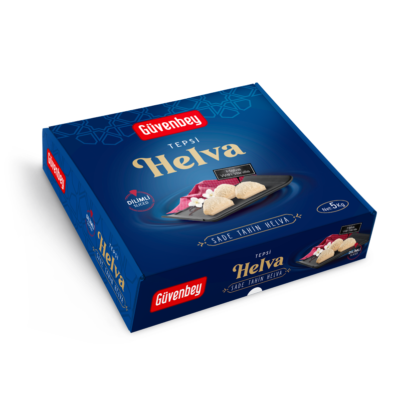 İşletmelerinizde zaman tasarrufu sağlamak için üçgen dilimli tepsilerdeyiz! Otel, Restaurantı, ve işletmelerinizde kişiye özel porsiyonu siz belirleyin. Güvenbey Sade Tahin Helva, 1. kalite malzeme kullanılarak ve geleneksel yöntemler ile üretilmektedir. Sadece tahin, şeker ve susam yağının şeker ile karışmasını sağlayan Çöven Özütü kullanılarak yapılmaktadır.